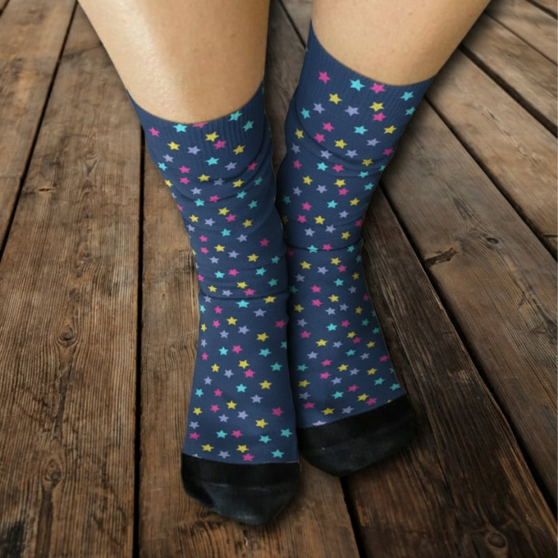 Esta meias cheias de estrelinhas coloridas são uma graça!